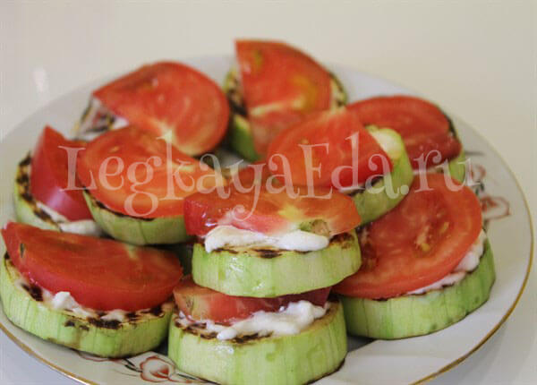 Кабачки жареные на сковороде с чесноком, помидорами и майонезом