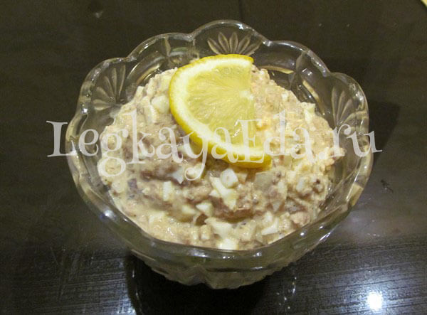 Рыбный салат с консервами и с яйцом